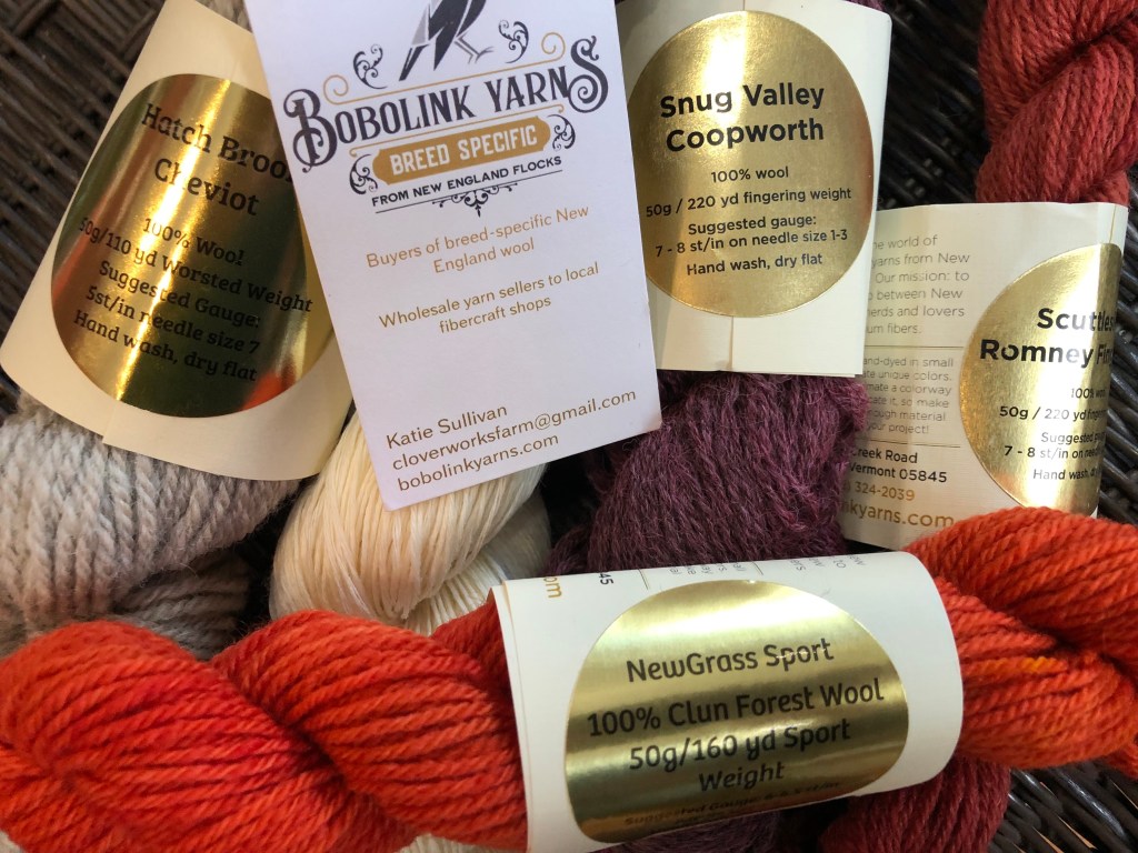 We are excited to be carrying Bobolink Yarns and will have a Yarn Tasting on March 11th at 5:00, so you can learn more about the yarns. The owner of Bobolink, Katie Sullivan from Cloverworks Farm in Irasburg, Vermont, will be here to talk about her Breed Specific yarns and her mission. We’ll be able to knit with Club Forest wool, NW Levity (a combination of linen and wool), Coopworth, Romney, and Cheviot. Join us for nibbles, sips, and an education!