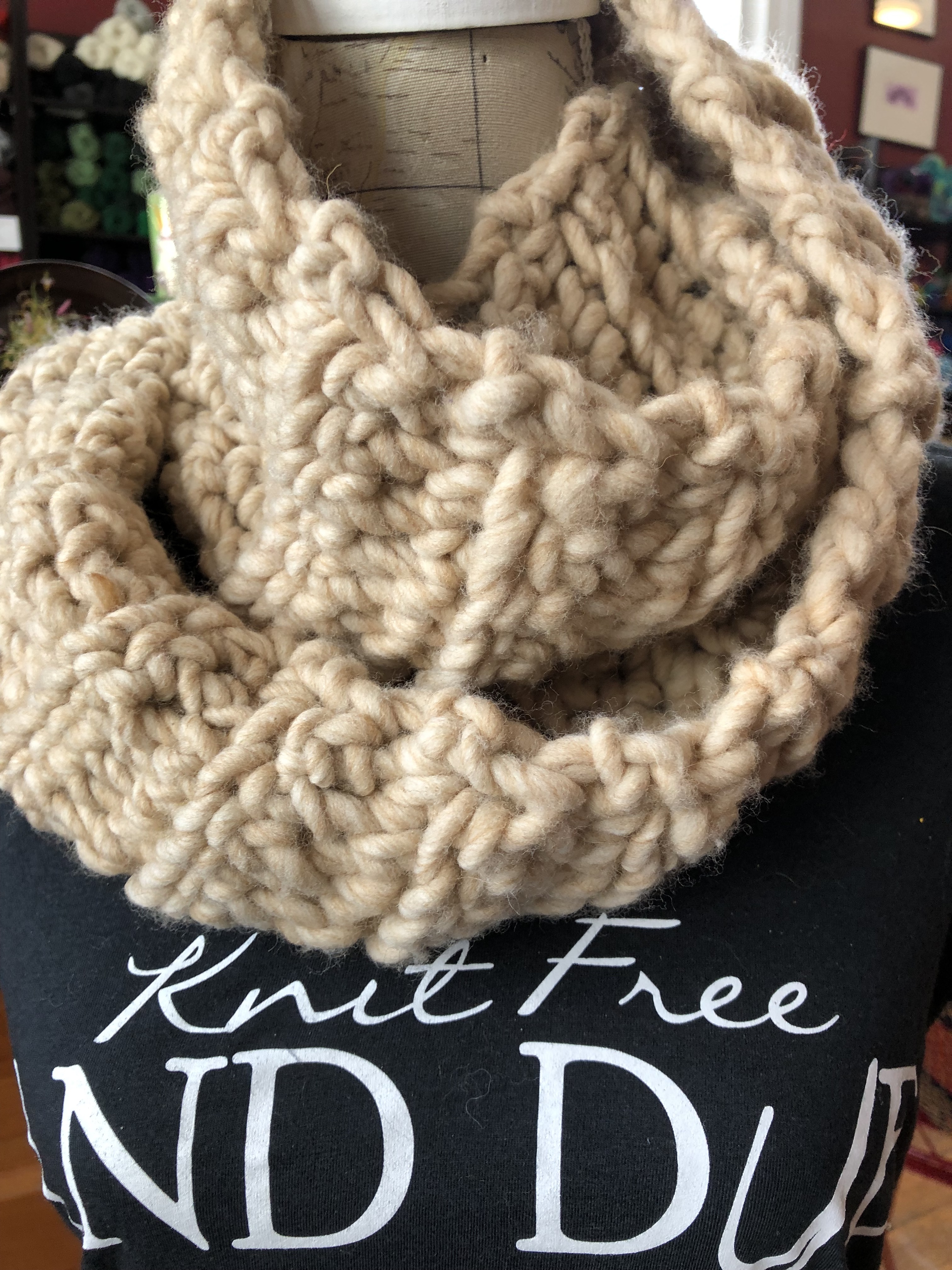 March 19: Crochet the Sassenach cowl with super bulky yarn and Size Q hook. Pattern included. $15