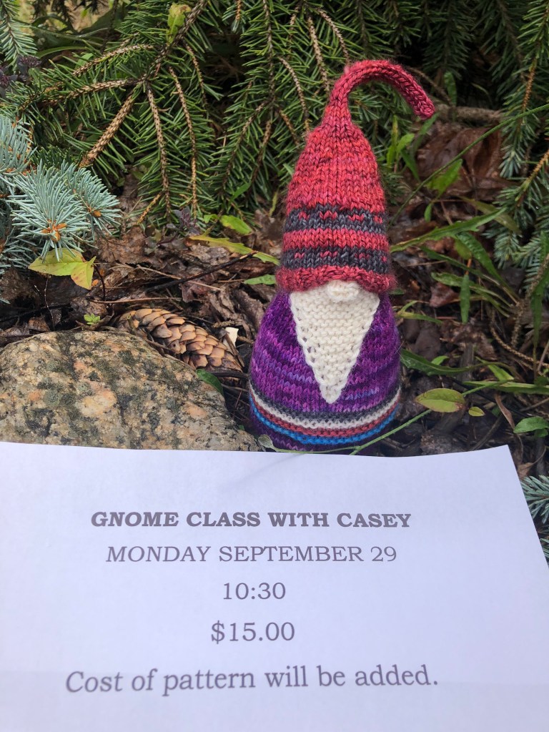 September 29th: Gnome class with Casey on Monday morning. 10:30. $15