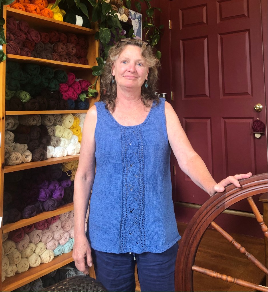 August 30th: Miname Lace Top. If you haven’t attempted lace, this summer top will be a great project for you. Knit in DK weight with #6, Kraemer Tatamy Tweed (on sale) makes a great summer cotton/acrylic top.