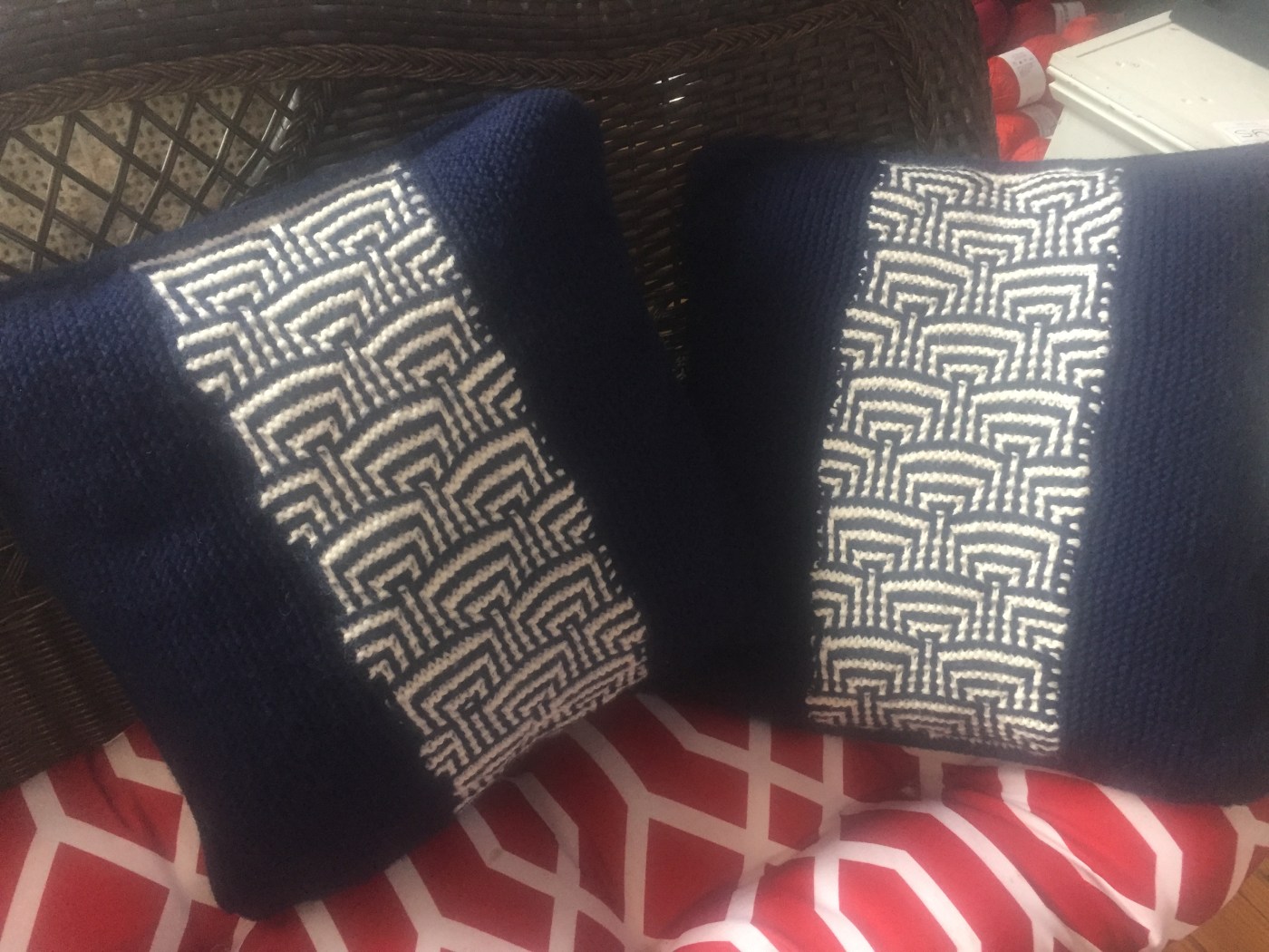 Friday, April 3rd at 5:00: Zoom In for a Yarn Tasting. We won’t be checking out a yarn, but sharing projects, so click on the link at 5:00 and we’ll talk projects with each other. The photo above is of a set of pillows I recently finished for my son and daughter-in-law. If you haven’t used Zoom, it is great for meetings. You’ll be able to see everyone who joins and chat with them. Make sure to let Zoom access your camera and audio when you are asked, so you can see and hear everyone. I look forward to seeing you then and hope to plan more events using this technology.