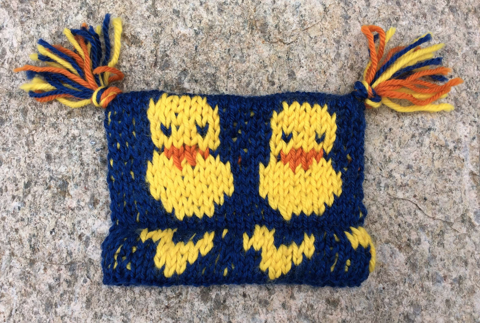 Little Duck Hat: August 17th, 10:30 Learn to carry yarns with this cute hat for a newborn. Size 7, 16 inch needle. $15