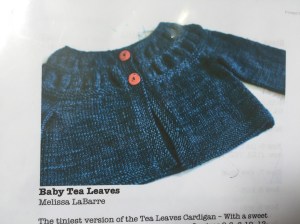 June 6th: Baby Tea Leaves sweater. Easy sweater using only 360 yards of sport-weight yarn and #3 29” and #5 29” and DP needles. Additional $6 for pattern.