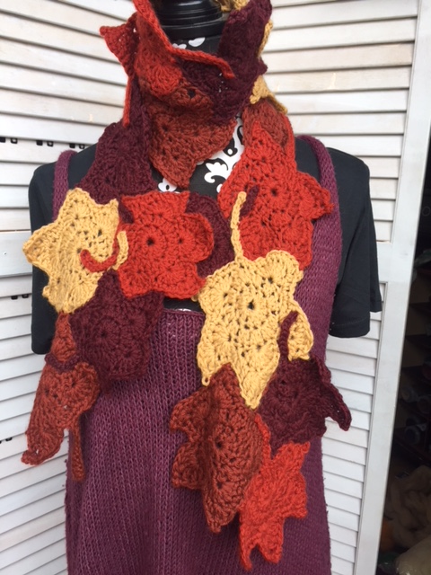 October 13th: Saturday at 10:30. Crocheted Leaf. Learn to make this leaf, then make a bunch and put them together for a unique scarf. $15