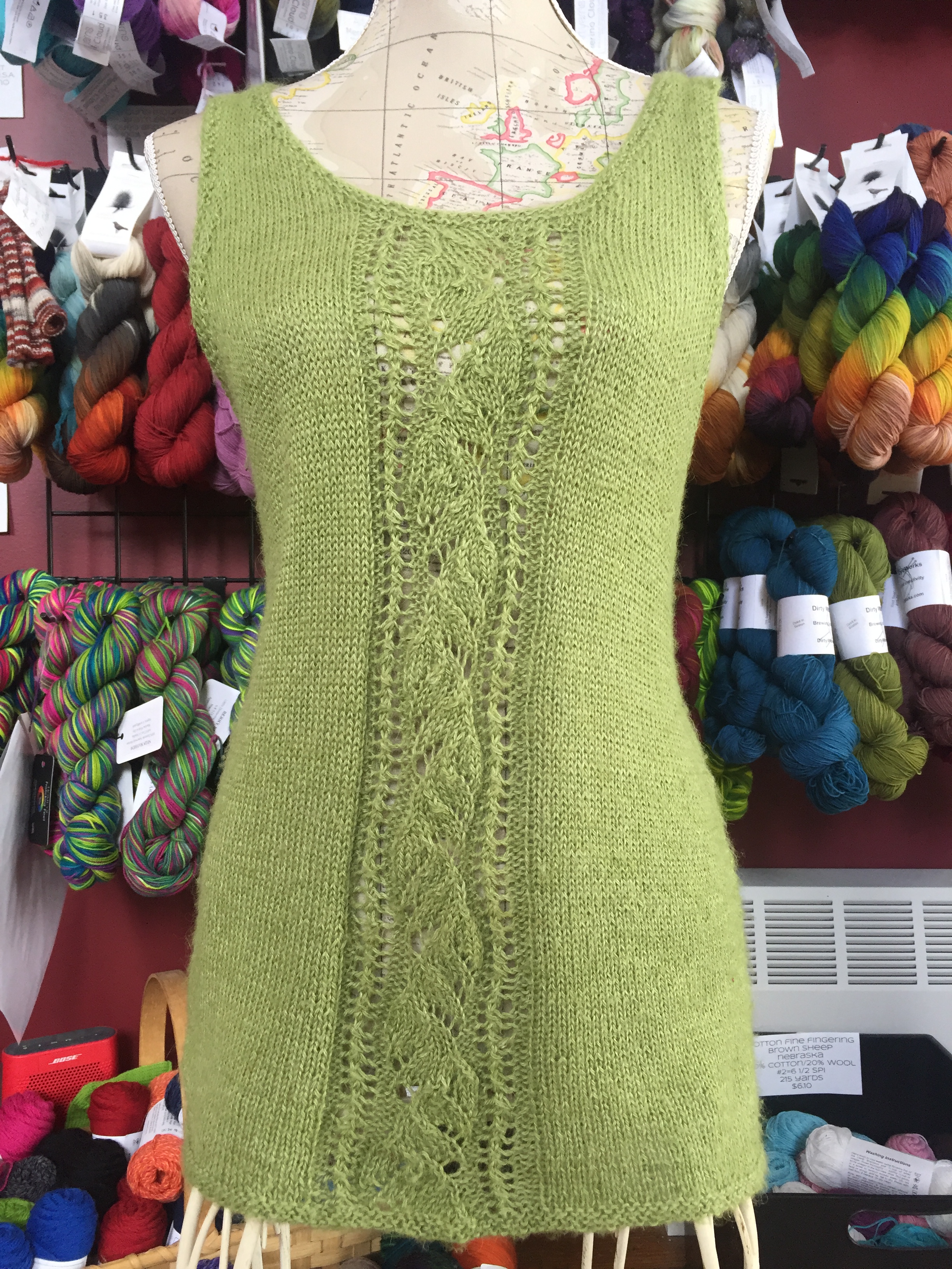 Thursday, April 23rd: Minami Sleeveless Top. Size 4 and 5 needles, fingering or sport weight yarn. $15 includes pattern and instruction.