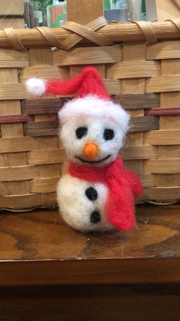 December 20th: 10:30-12:00 Felted Snowmen! Make a little decoration for the season! Hang from the tree or from a gift package. Sign up in advance, please. Supplies provided. $20