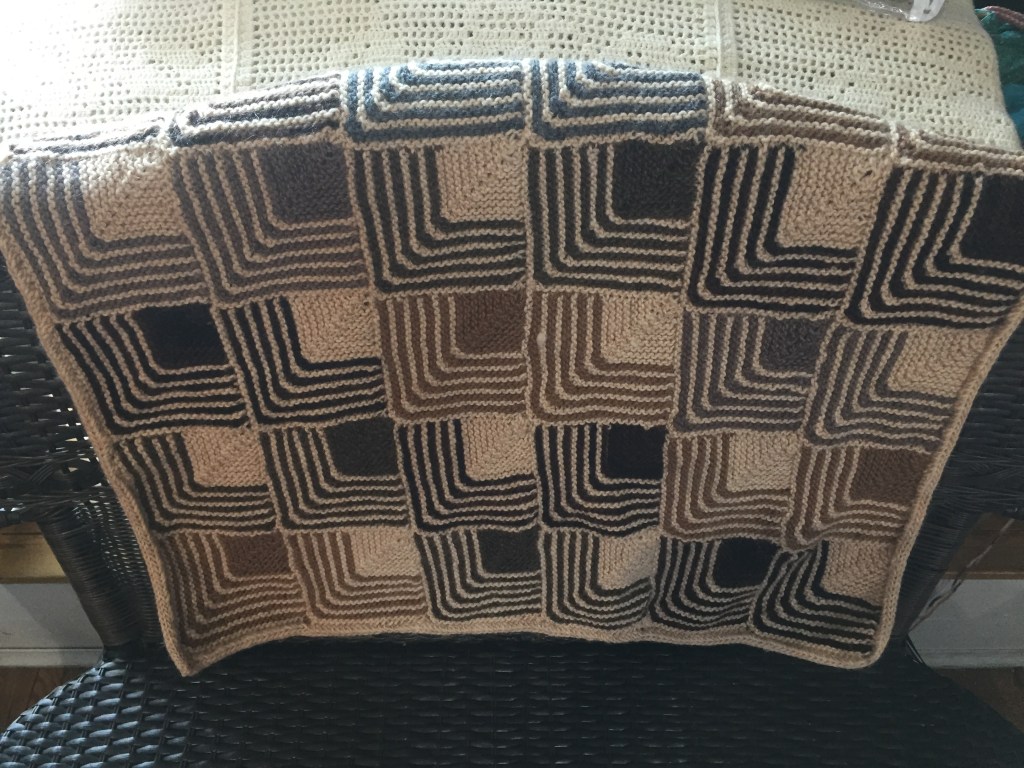 Saturday the 23rd at 10:30—mitred square coasters. Use as a coaster or put together as a blanket. #7 needles. Worsted weight yarn