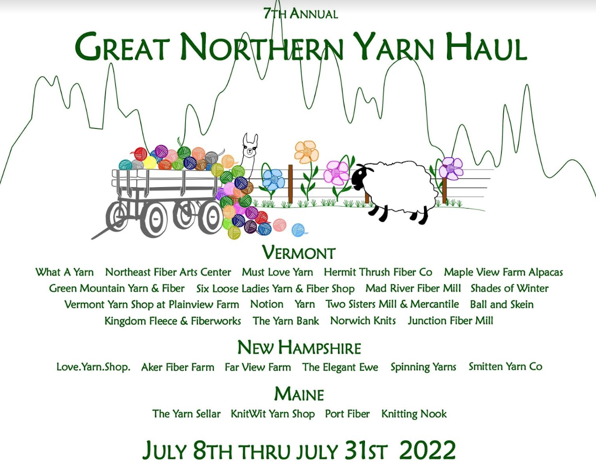 We will start the Great Northern Yarn Haul this Friday! Make a $20 dollar purchase and receive a tote, while they last. When you walk in, sign up for winning a $30 gift card, and, Friday only, draw a discount card with amounts varying from 5% to 20%.